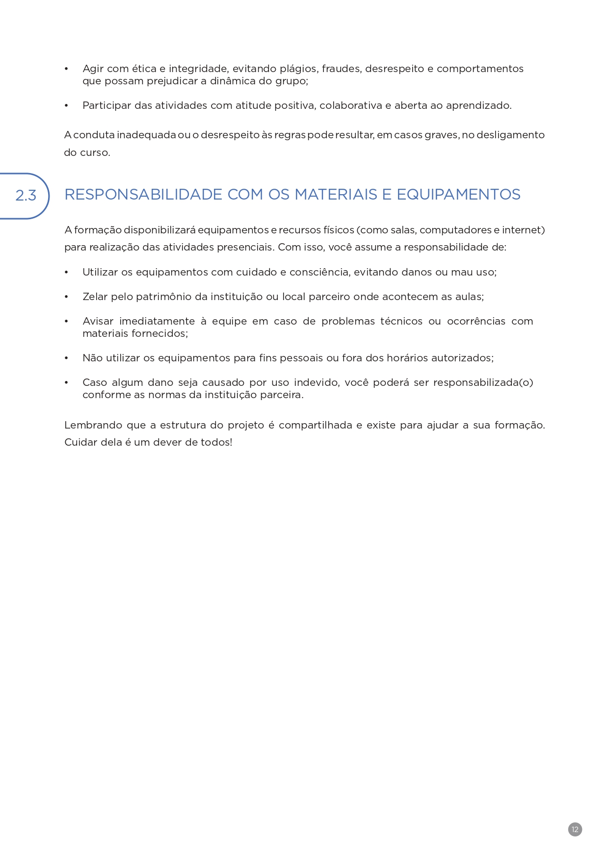 12. Direitos e Deveres dos Participantes